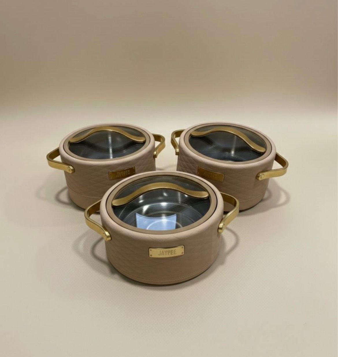 Elegant Design: Features a textured outer finish and metallic handles that add a touch of luxury to your food presentation.